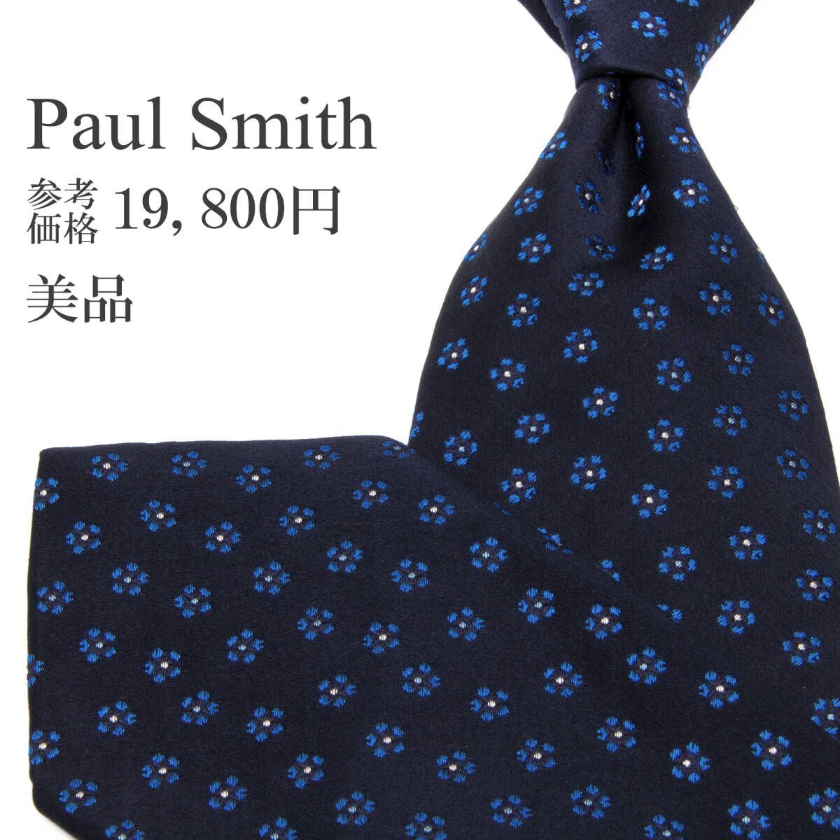 - 送料無料 ポールスミス ネクタイ レギュラータイ ジャガード シルク ネイビーブルー 青 シルバー 光沢 花 フラワー Y2K ブランド 綺麗 P514