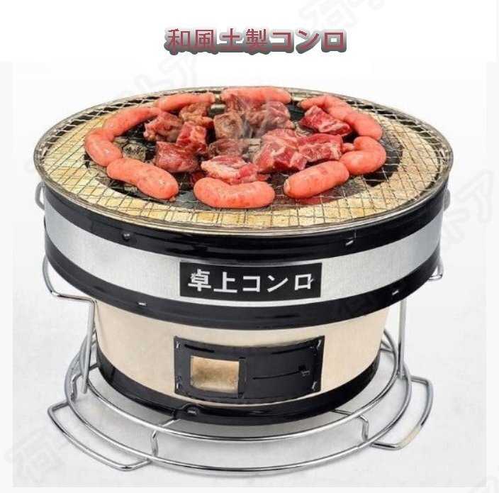 - 珪藻土丸型七輪 セラミック火鉢 炭火焼きコンロ 室内 焼き網つき テーブルバーベキューグリル 屋外 キャンプ shw302