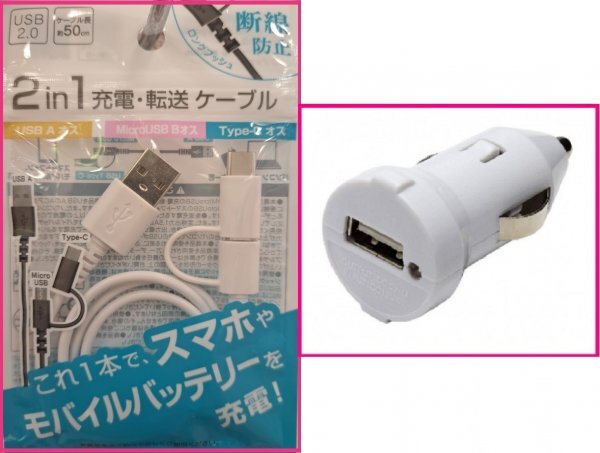 - 【送料無料:2点:2in1 USBケーブル+DC】★50cm タイプB & タイプC★充電ケーブル:スマホ★白:充電器 携帯 アンドロイド