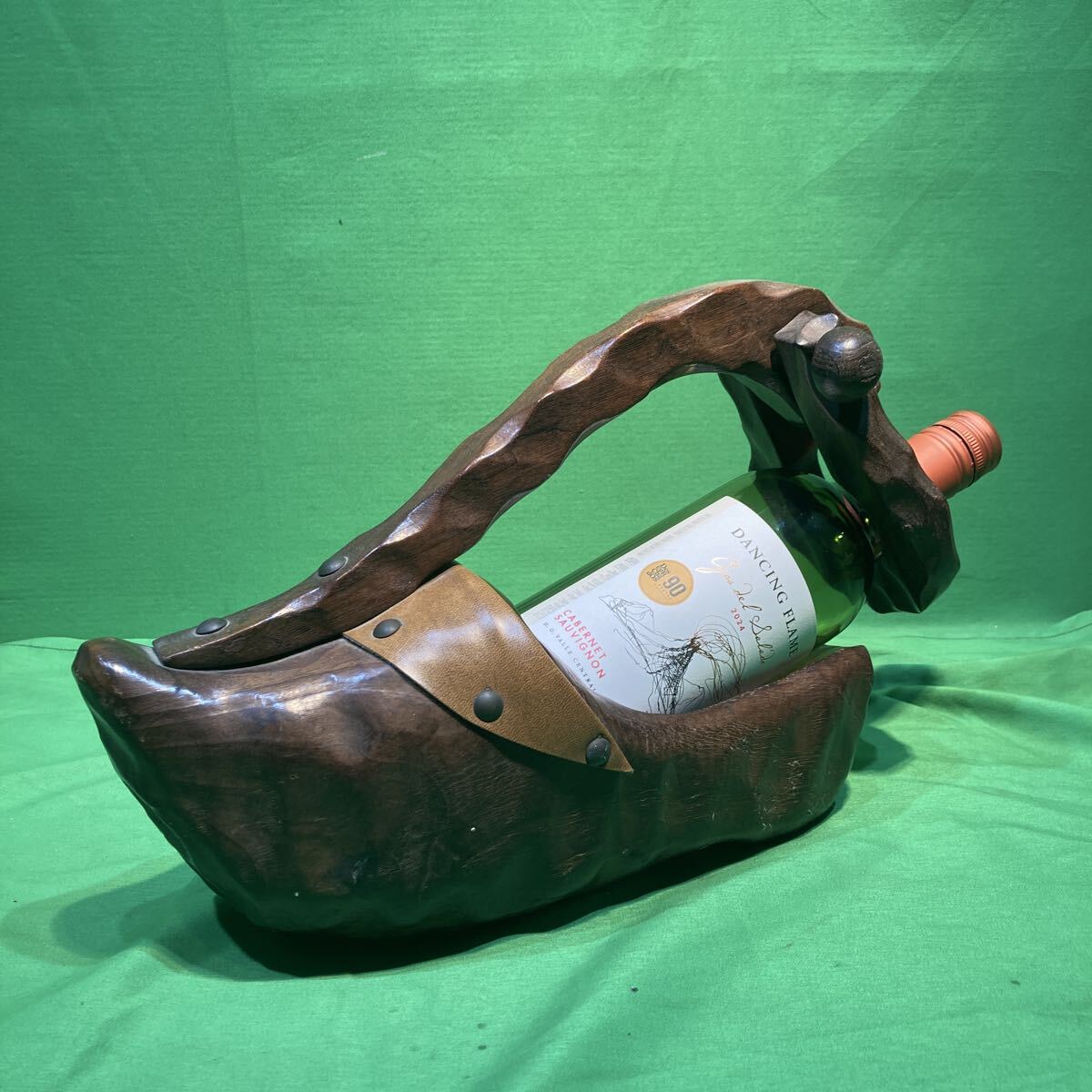 - 木製 ワインホルダー ワインラック 靴型 オブジェ インテリア 置物 飾り レトロでオシャレ 中古品