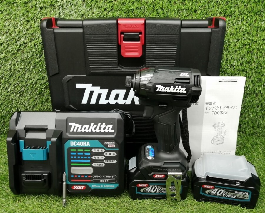 > 未使用品 makita マキタ 40Vmax 充電式 インパクトドライバ 黒 + バッテリー 2個 + 充電器 + ケース セット TD002GRDXB 【3】