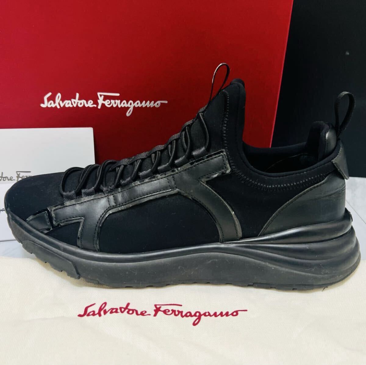 > 【美品】 Salvatore Ferragamo サルヴァトーレフェラガモ Shiro シロ 厚底 レザー ガンチーニ メンズ スニーカー 靴 シューズ 黒 27cm相当