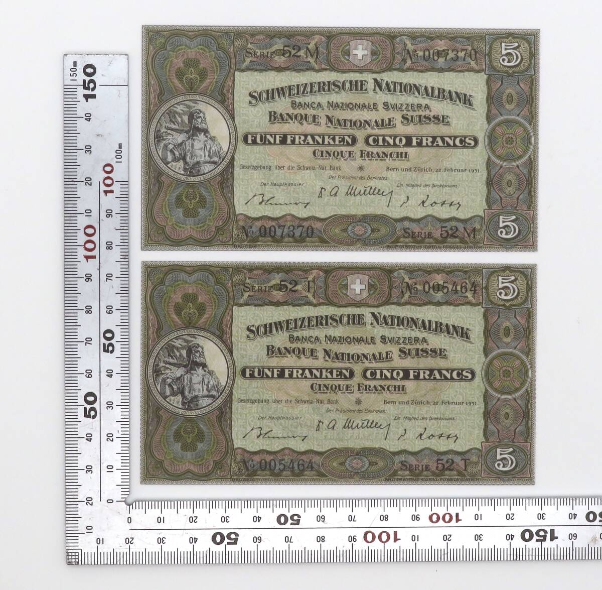 - 激レア 1951年 スイス 5フラン紙幣 ピン札 外国紙幣 貨幣 記念紙幣 古銭 外国通貨