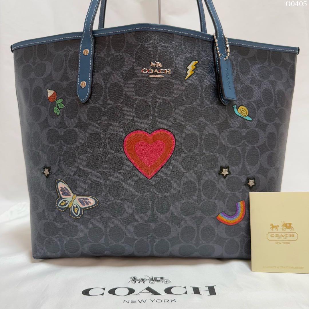 - 【訳あり極美品】COACH コーチ F24592 シグネチャー シティー トートバッグ マザーズバッグ ビジネスバッグ ネイビー 紺 ブルー 青