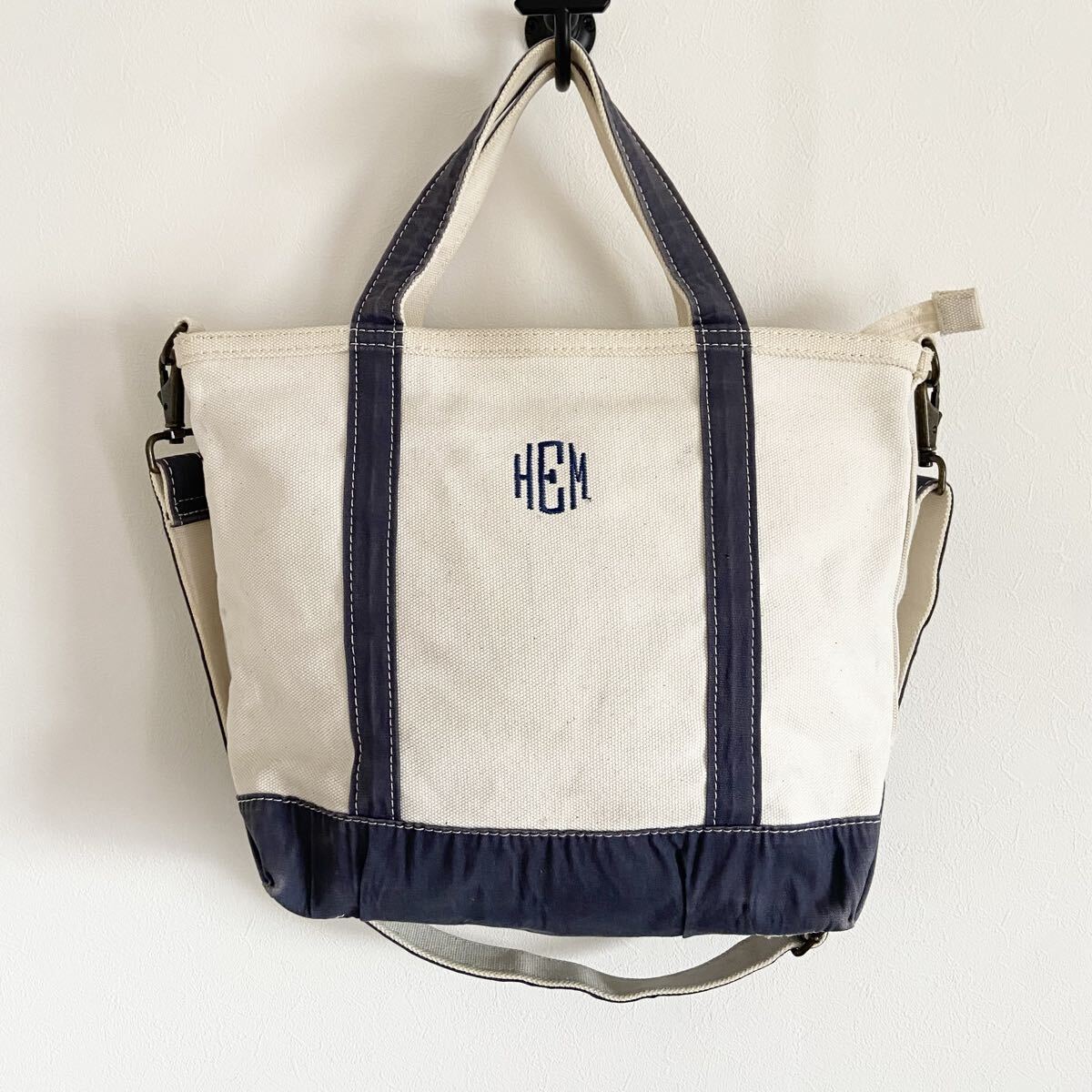 - 【L.L.Bean/ エルエルビーン】ワンポイント刺繍 ボート&トートバッグ/キャンバス地/アイボリー×紺/衝撃プライス!大人気アウトドア★C47