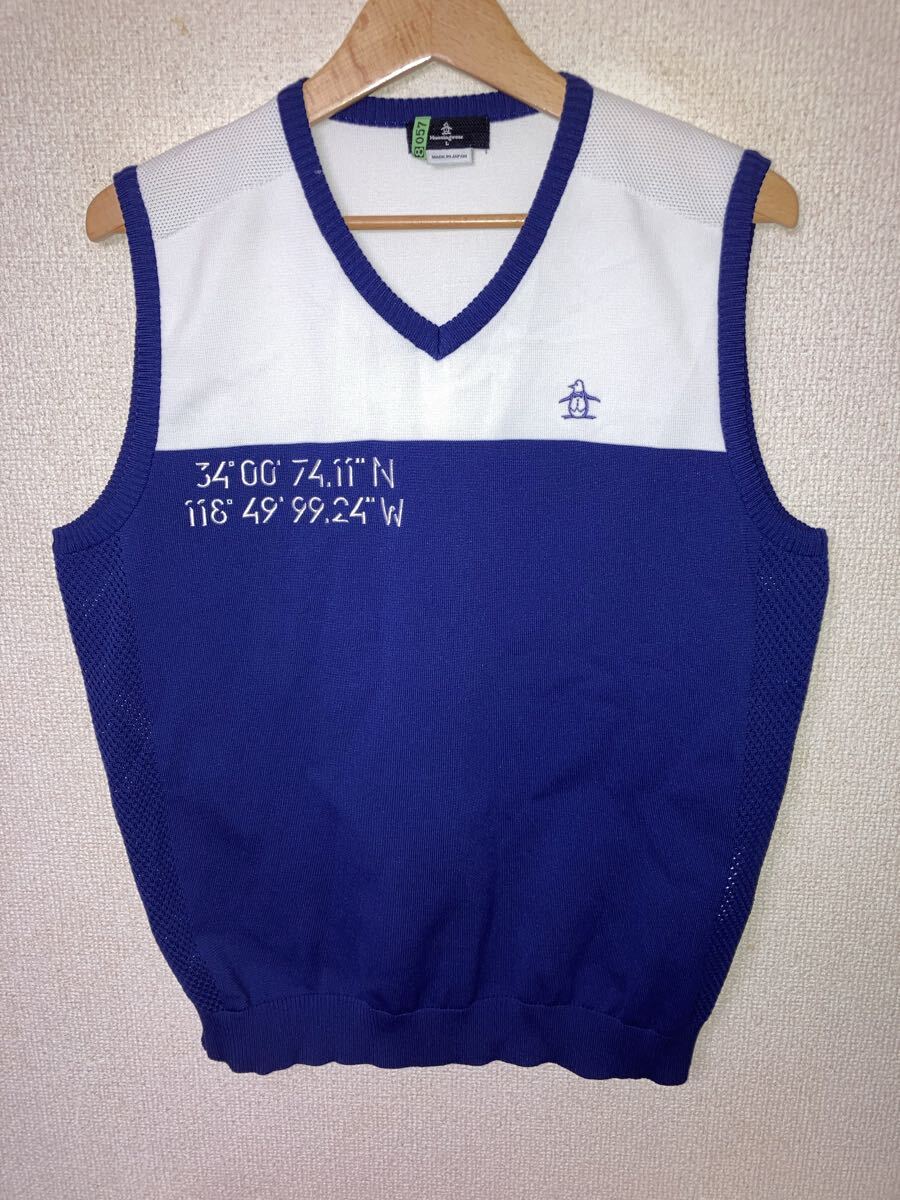 - クリーニング済 Munsingwear マンシングウェア ツートンカラー ニット ベスト Lサイズ 日本製 ディープネイビー系 ホワイト XJWMJ500