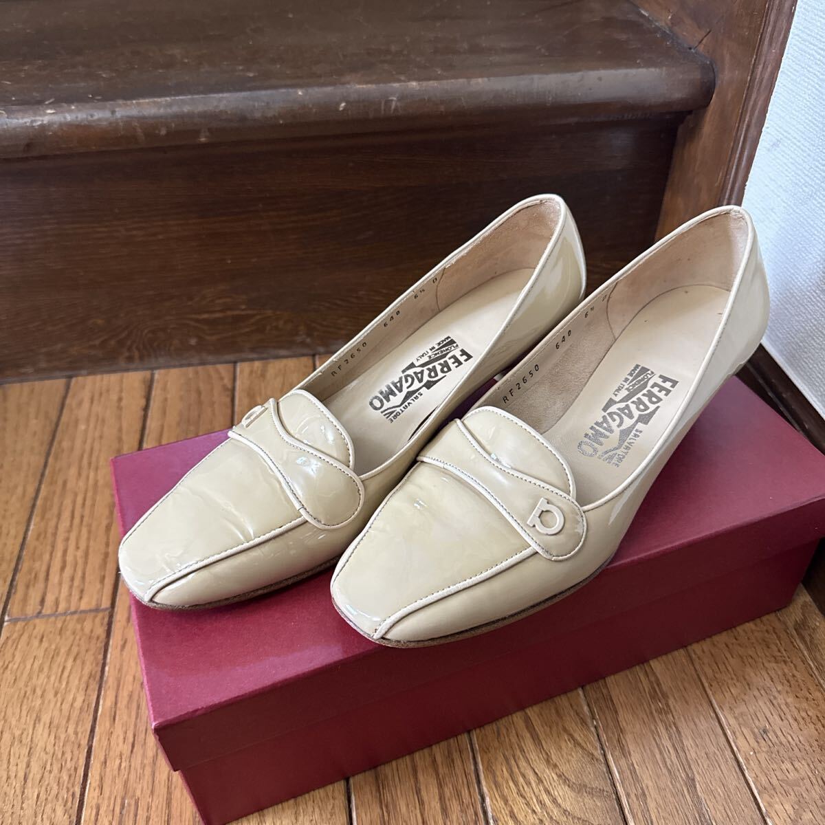 - Ferragamo ベージュ ポインテッドトゥパンプス 6.5