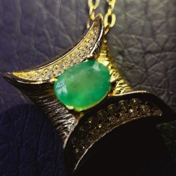 - 天然エメラルド デザイナーペンダント エレガント 鑑別付き ナチュラル 宝石 ◆最初の入札者様は開始価格で購入可能 S0z_6822