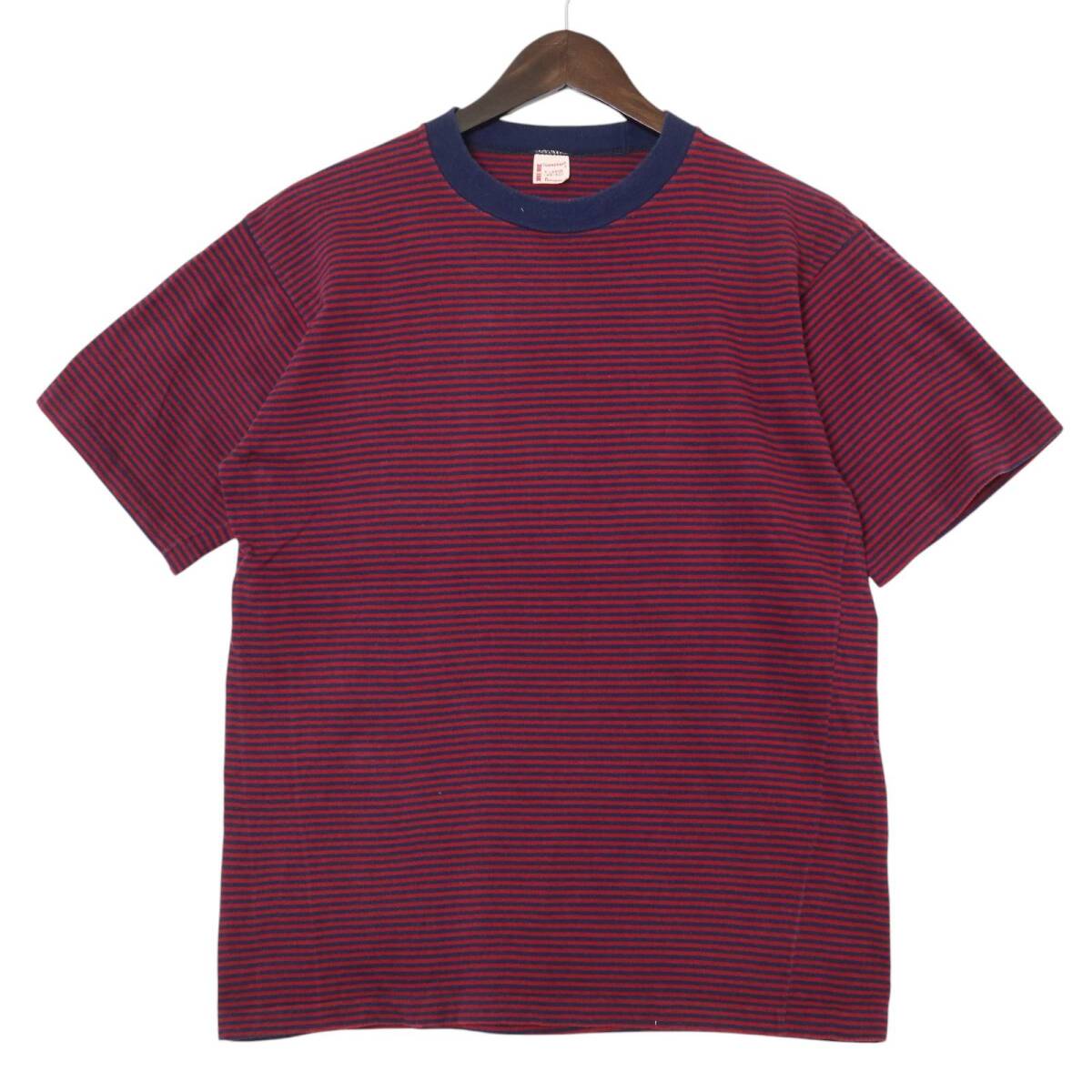 > 70年代 TOWNCRAFT タウンクラフト ボーダーTシャツ ヴィンテージ ワインレッド (メンズ XL) 中古 古着 A4262