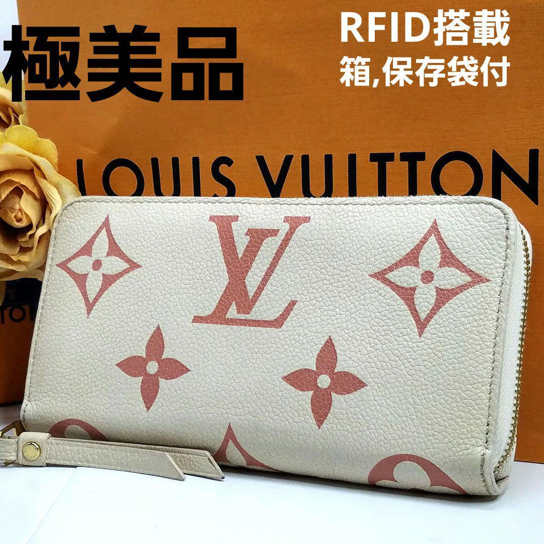 > 箱,保存袋付 Louis Vuitton ルイヴィトン RFID搭載 バイカラー M81914 クレーム ローズトリアノン モノグラム ジッピーウォレット レザー