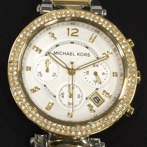 > マイケルコース ラインストーン クロノグラフ デイト クォーツ 腕時計 レディース ホワイト文字盤 稼働 MICHAEL KORS