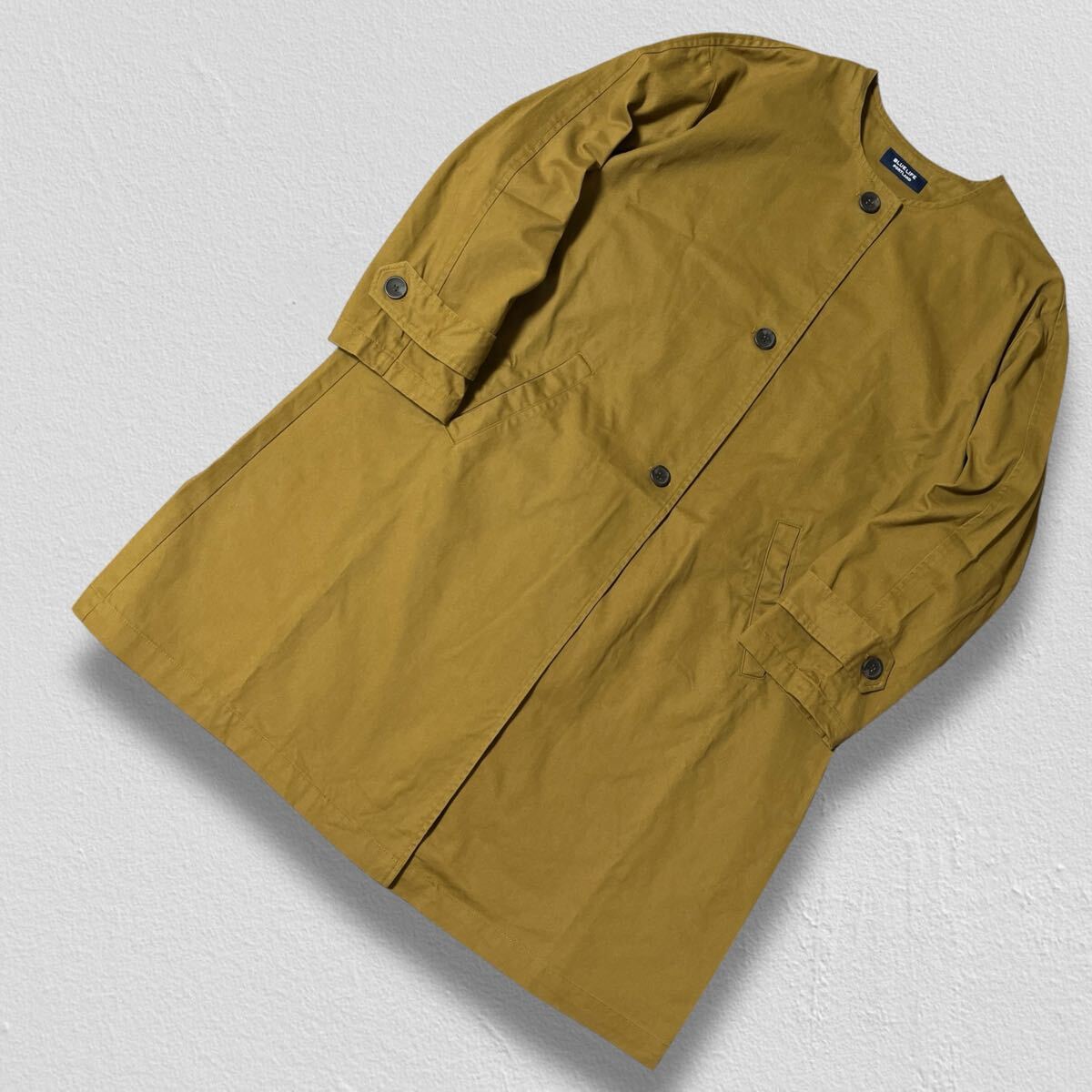 - BLUELIFE PORTLAND ノーカラーロングコート キャメル系 フリーサイズ ●洗濯プレス済● ブルーライフ ポートランド コットン 古着/699