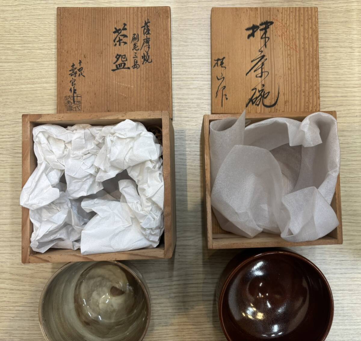 - 【1円スタート!!】2個まとめ売り 有田焼 茶道具 茶器 抹茶碗 桂山作 十四代 沈寿官造 薩摩 時代品 陶器 陶芸