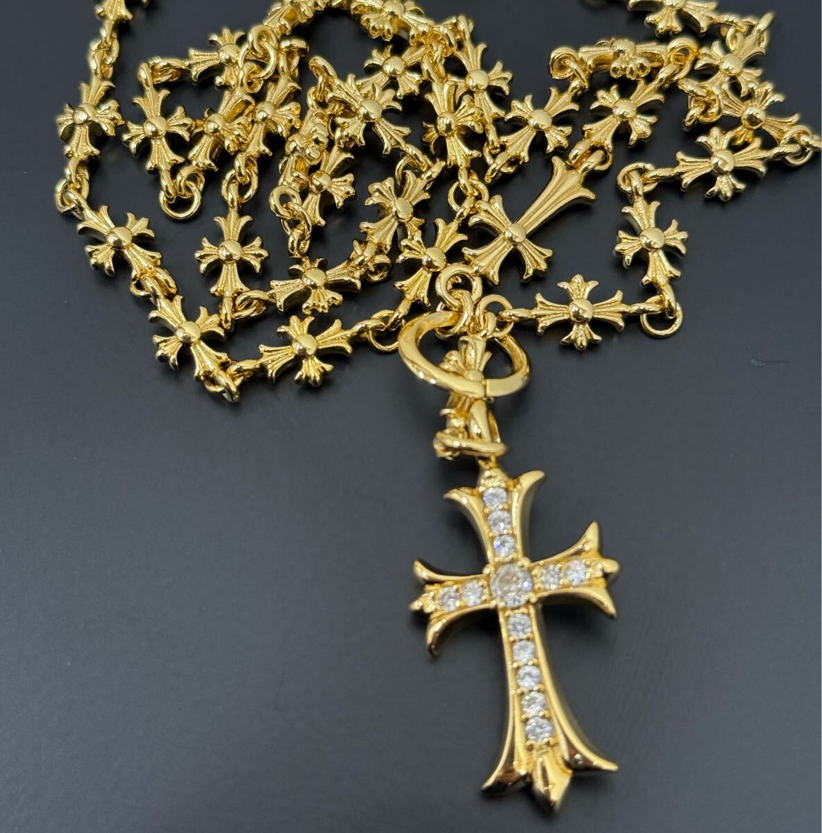 - ゴールド ロザリオネックレス クロスネックレス タイニークロスネックレス ゴールドチェーンネックレス
