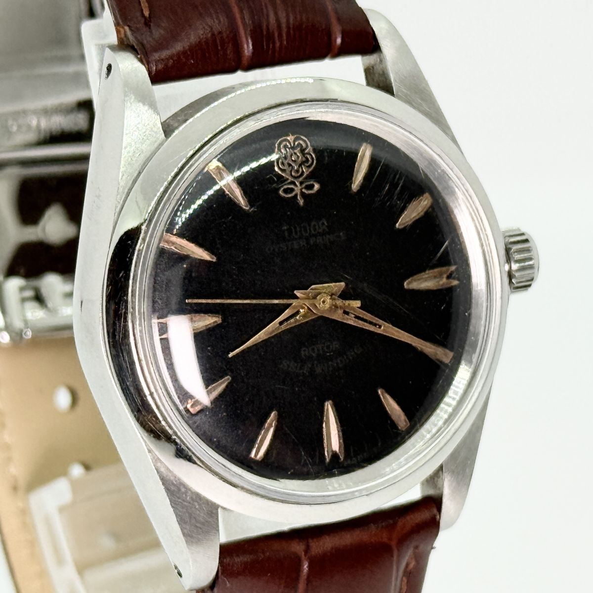 - M8194 TUDOR チュードル オイスタープリンス デカバラ 黒文字盤 SS×革 AT 稼働品 9050/0 556417 メンズ 腕時計