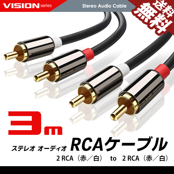 - オーディオケーブル 3m 2RCA to 2RCA(赤/白)変換 金メッキ オスーオス ステレオケーブル ネコポス 送料無料