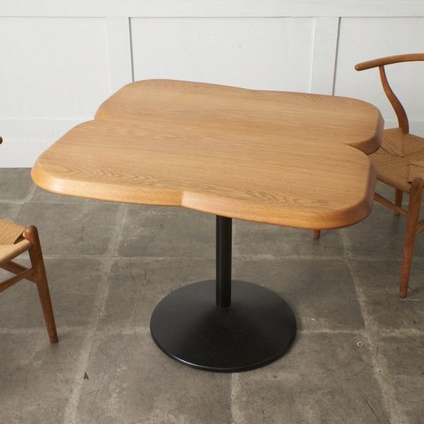 > IZ95329F★作家物 盛永省治 カフェテーブル 無垢材 オーク 鉄脚 ダイニングテーブル シンプル 工房 ナチュラル モダン クラフト 木工 作家