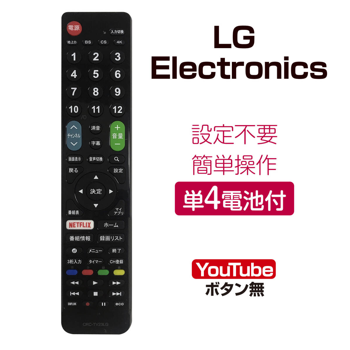 - LG エレクトロニクス テレビリモコン crctv23lg 設定不要 互換 液晶テレビ 汎用 テレビ用 リモコン汎用 簡単