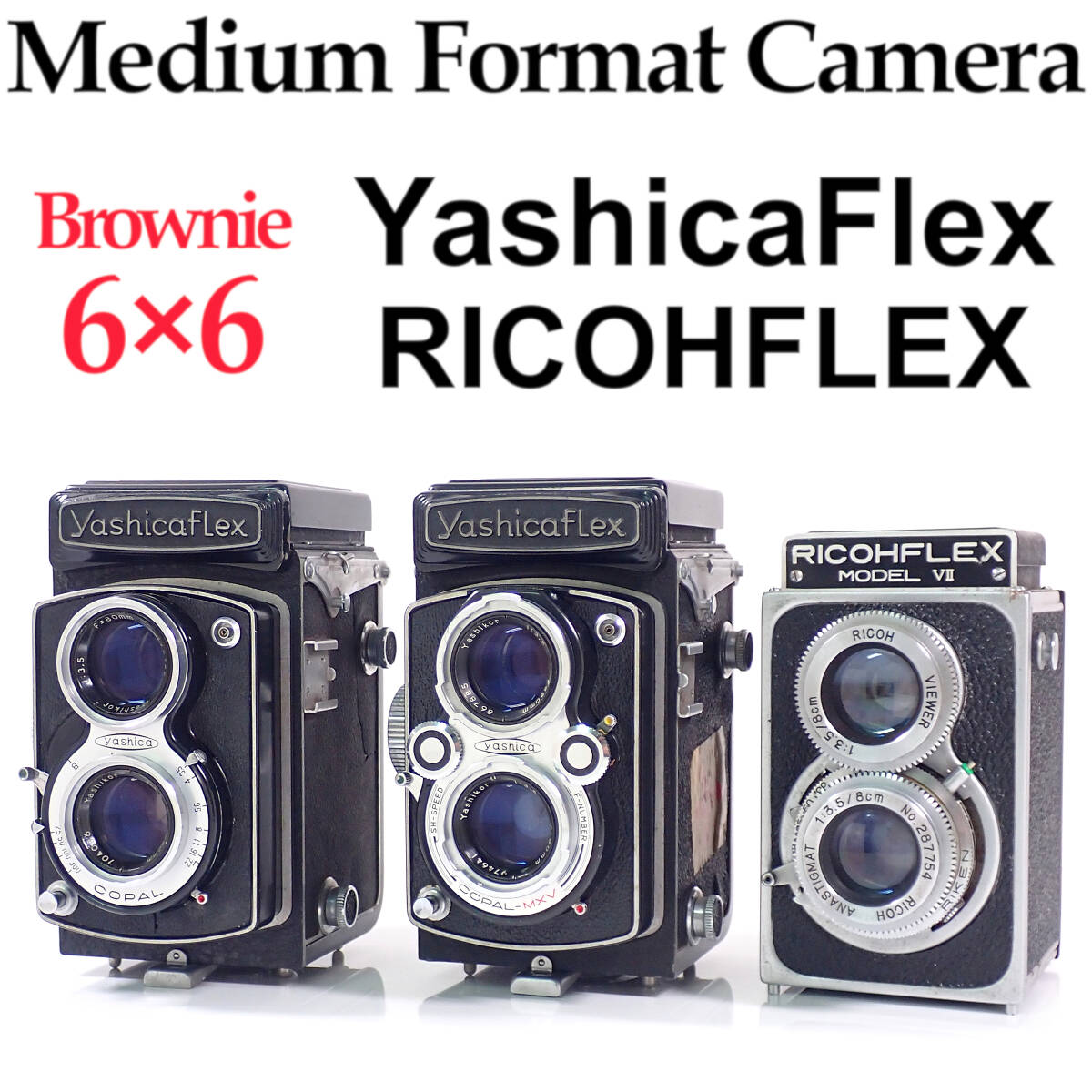 > 6×6 MediumFormatCamera「YasicaFlex NewA」「YasicaFlex NewB」「RICOHFLEX MODEL VII」 中判カメラ リコーフレックス ヤシカフレックス