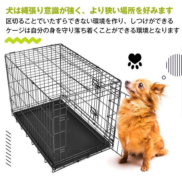 > 未使用 ペット ケージ 犬 折りたたみ 小型 中型 引き出し レー ダブル ドア ペットサークル 75cm×47cm×57cm 室内 犬小屋 スチール pt06