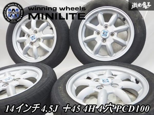 - ●ダイハツ 純正 MINILITE ミニライト 14インチ 4.5J +45 4H 4穴 PCD100 ホイール 4本セット 155/65R14 2021年 タイヤ 4本セット 即納