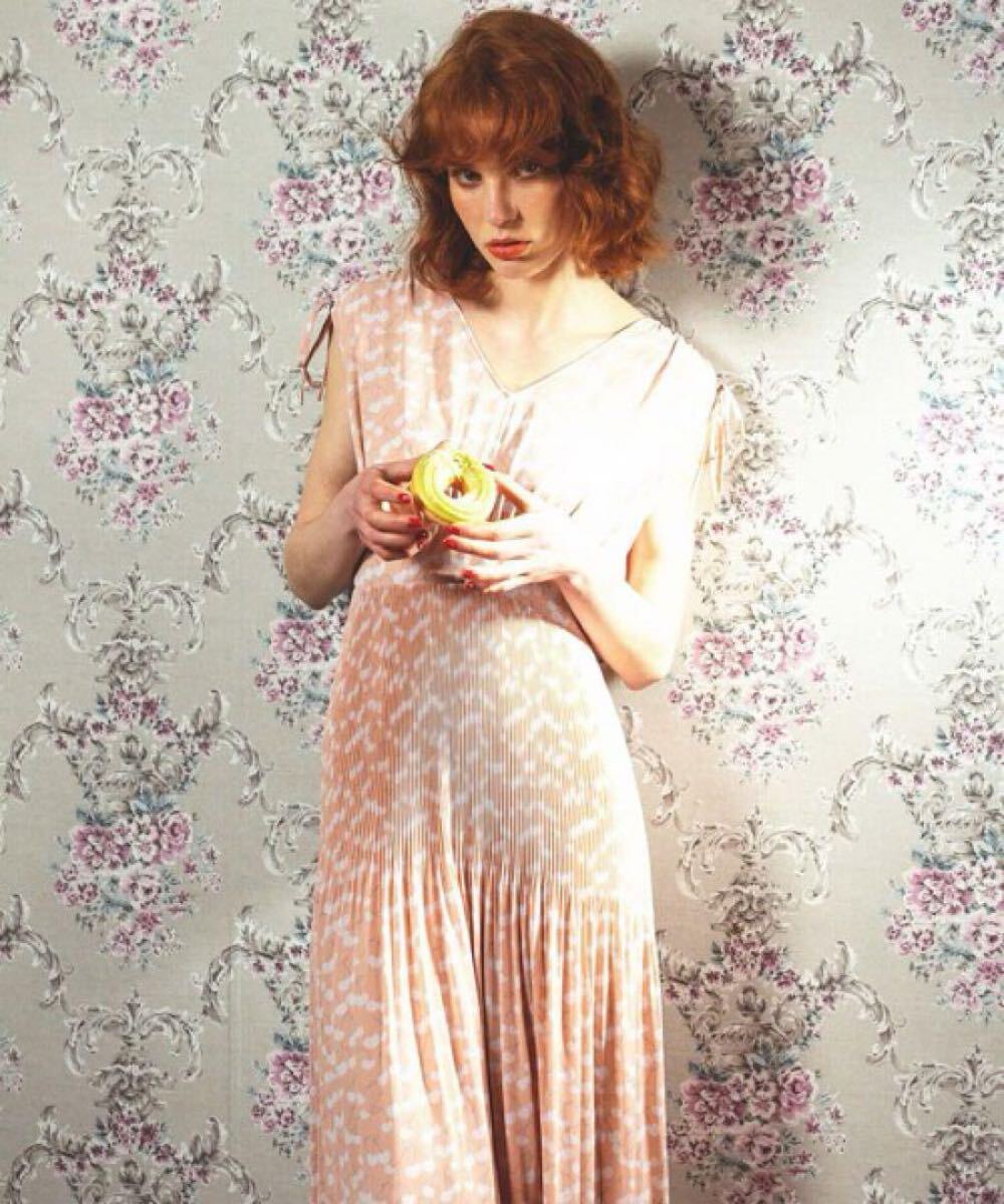 - TOCCA トッカ☆Cherry Print ドレス 4 肩シャーリング ロング ワンピース ピンク色