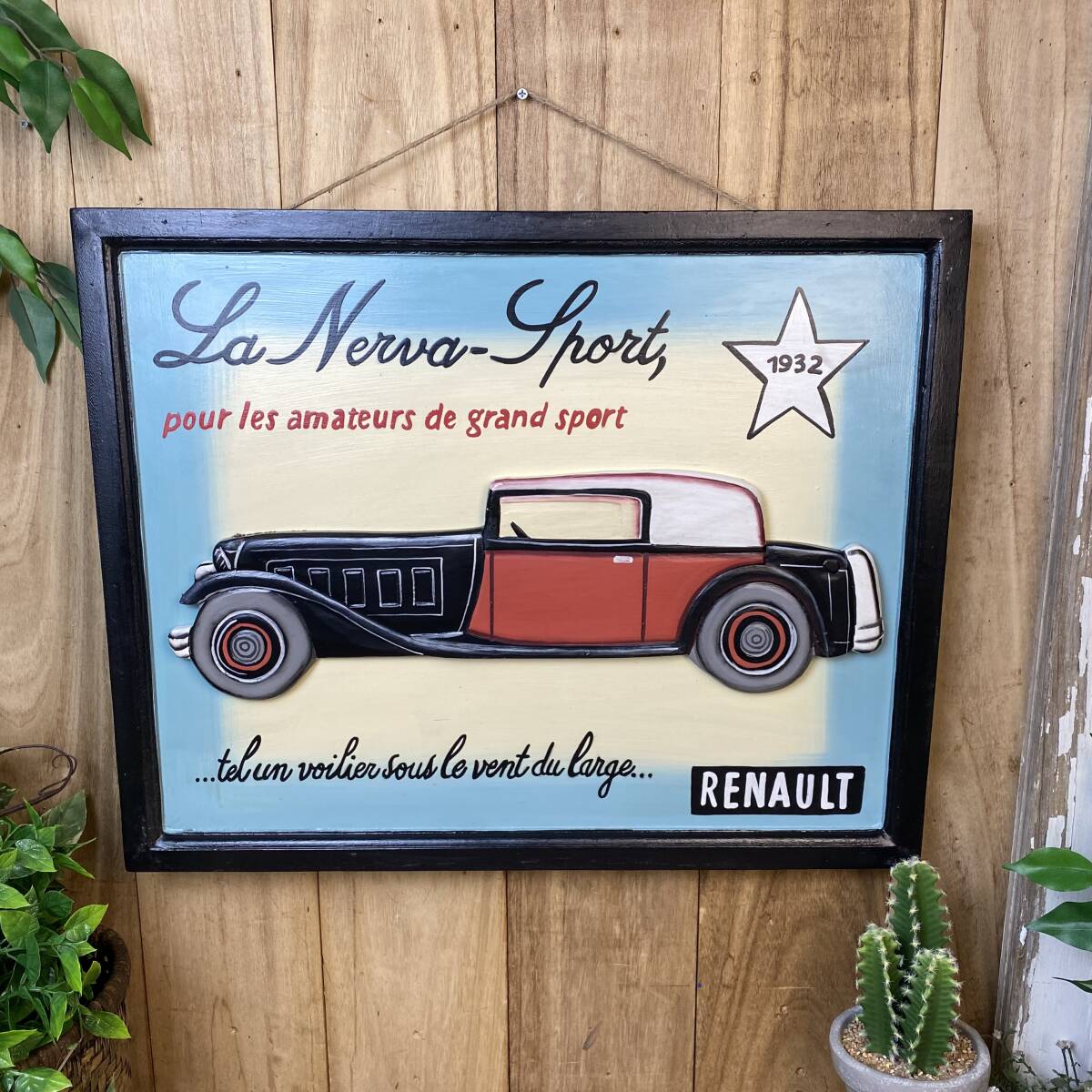 - 送料無料アンティークビンテージ調インドネシア手描木製サインボード(60㎝×48㎝)ブルー、看板パネルディスプレイ壁掛けインテリア雑貨
