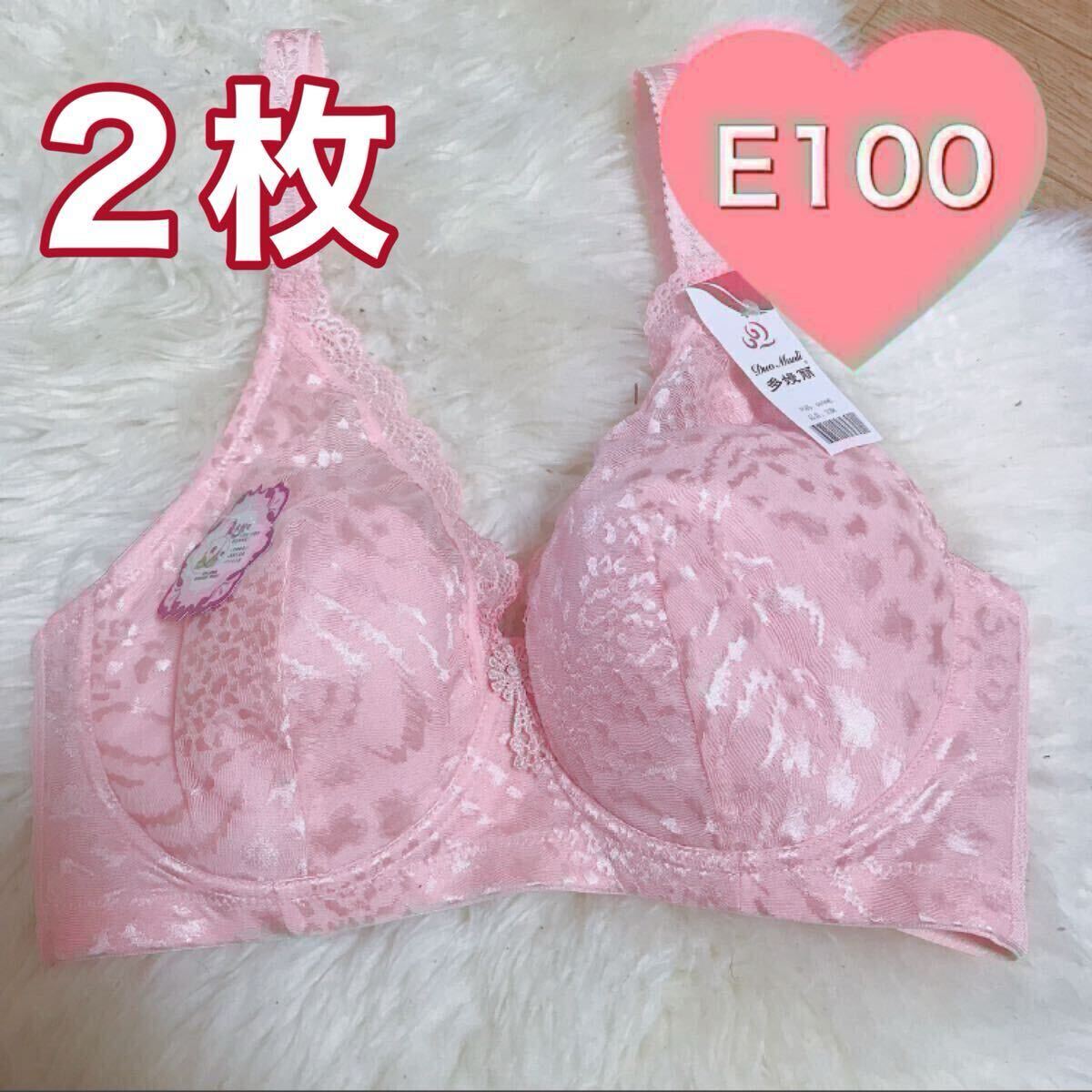 - 大きいサイズ フルカップ ブラジャー ピンク E100 Eカップ 100E 4段ホック 下着 プラスサイズ ワイヤーブラ 2枚セット 2点
