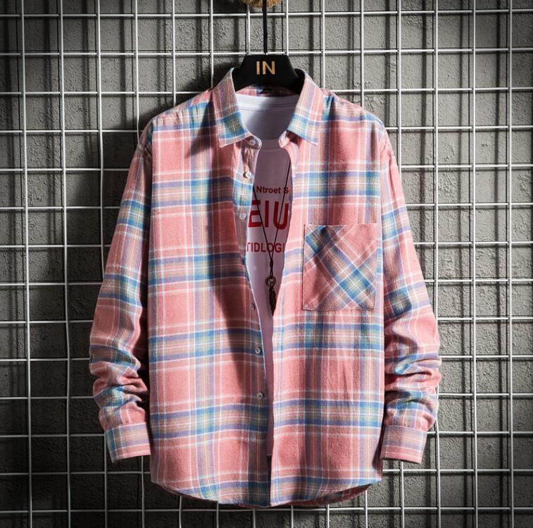 - 人気品新作メンズ長袖シャツ カジュアルシャツ メンズ トップス 長袖 シャツ オーバーシャツ チェックシャツ ボタンダウンシャツ レッド