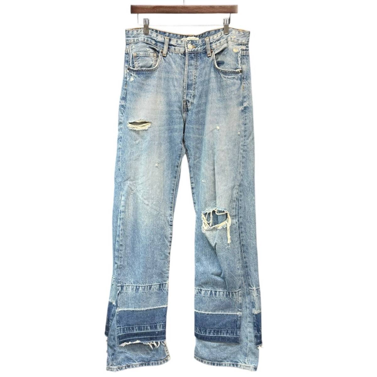 - ZARA ザラ RELAXED-FIT ダメージ加工リラックスストレートデニムパンツ 44 インディゴ 14874