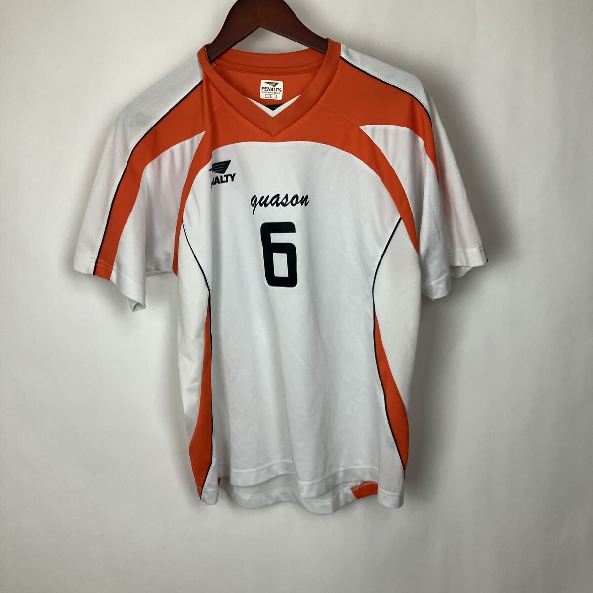 - ペナルティ ユニフォーム オレンジ 半袖 半袖Tシャツ スポーツウェア メンズ 男性向け Lサイズ ホワイト 白