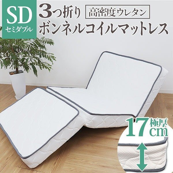 > 高密度ボンネルコイル マットレス 厚さ17cm セミダブル 三つ折り 硬め ボンネルコイルマットレス スプリングマットレス コイル 通気性