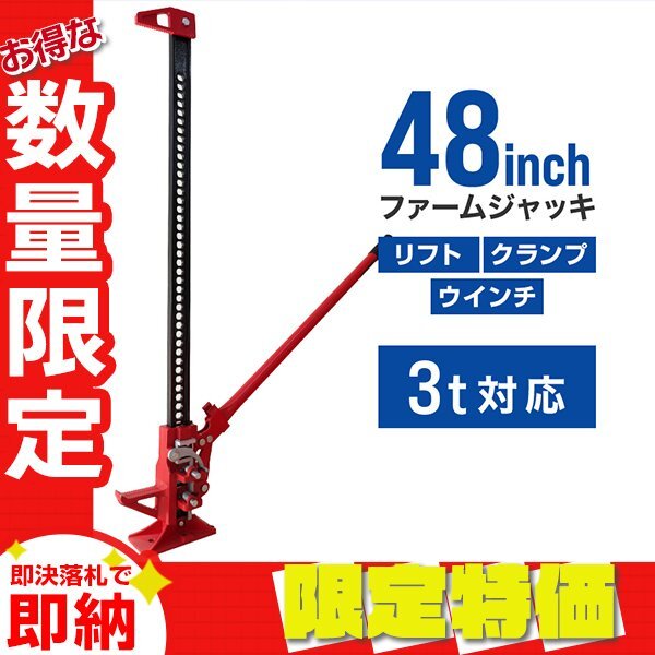 > 【限定セール】新品 ファームジャッキ タイガージャッキ 3t対応 最高位1040mm 48inch ウインチ クランプ ジャッキ 整備 車の救出 脱出 赤