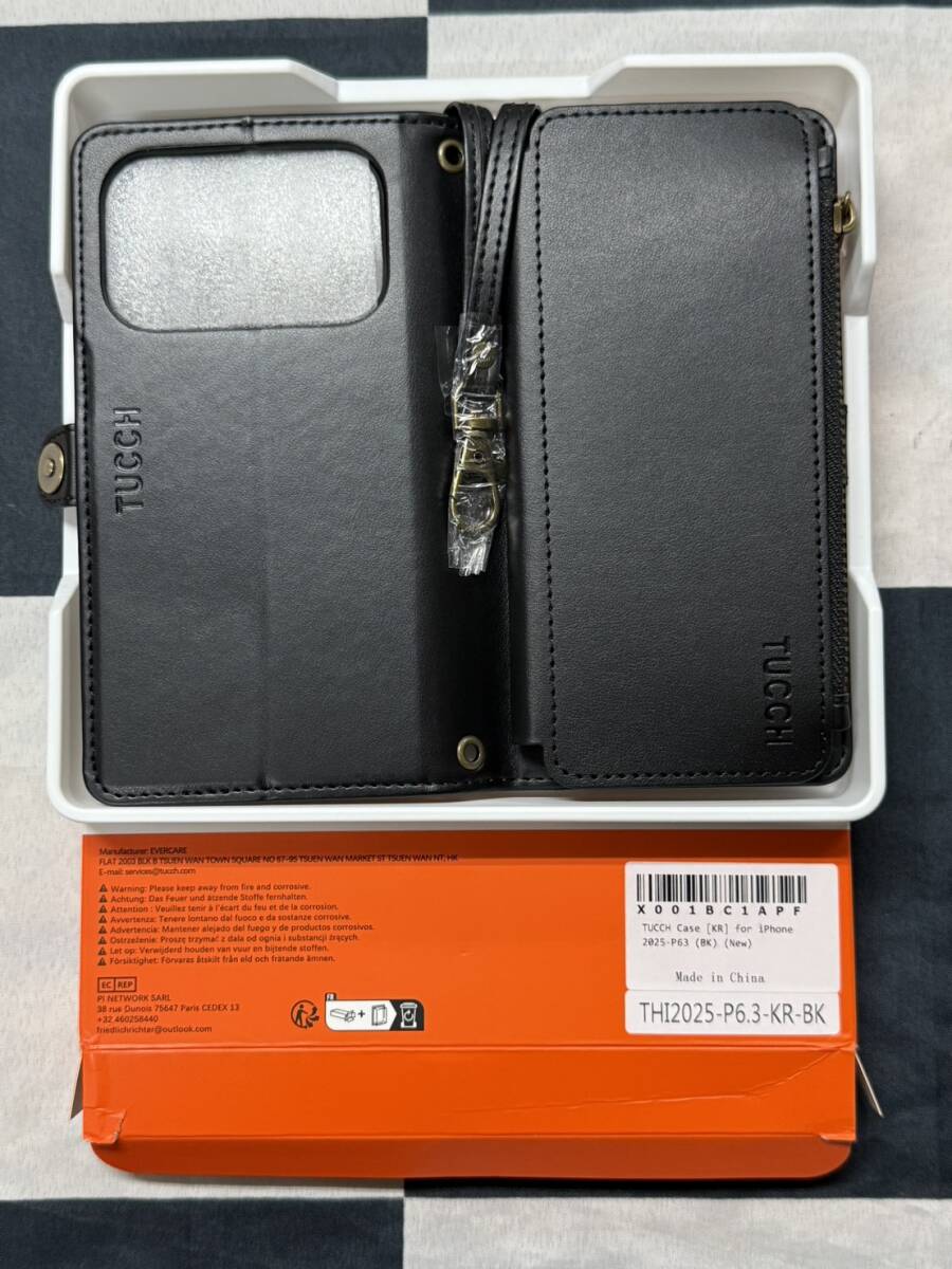 - TUCCH iPhone17Pro手帳型ケースブラック2in1分離式ショルダーストラップ取外可RFIDブロッキング大容量9カードポケットファスナースタンド