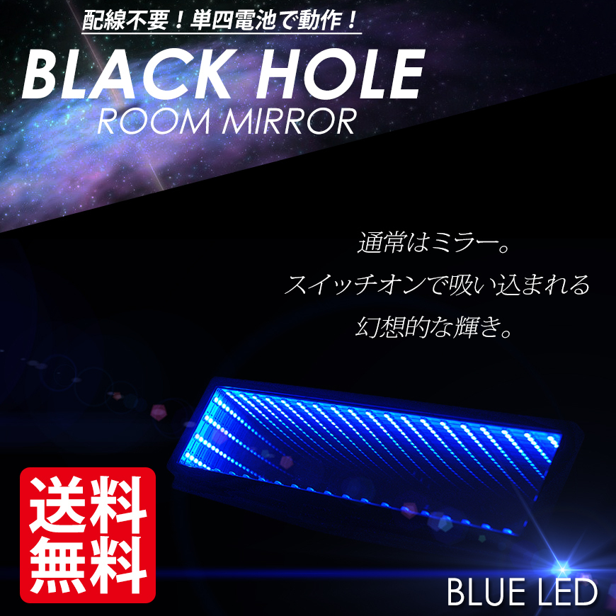 - LED ルームミラー / ブラックホール /青/バックミラー/定形外 送料無料
