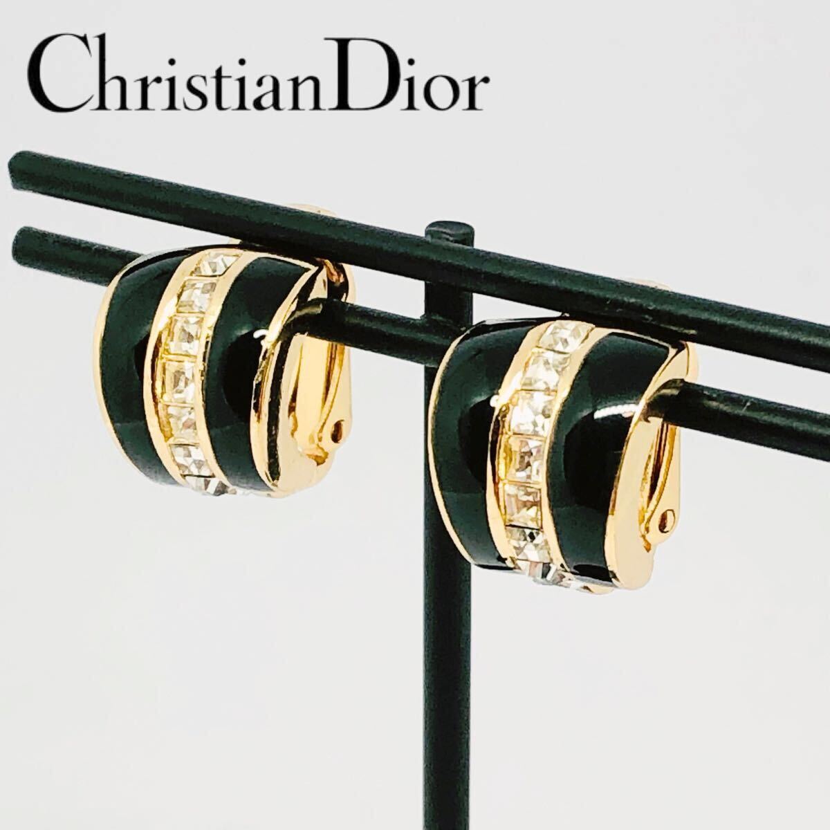 > Christian Dior クリスチャンディオール イヤリング 黒 ブラック ゴールド フープ エナメル ラインストーン GERMANY ヴィンテージ 刻印あり
