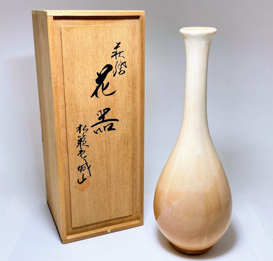 - 【未使用】萩焼 松籟庵 城山窯 貫入 花器 花瓶 一輪挿し インテリア オブジェ