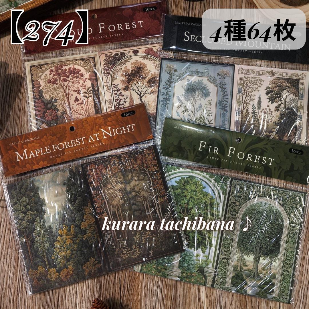 > 【274】コラージュ素材 背景紙 ペーパー メモ帳 紙もの 自然 樹木 素材紙 ジャンクジャーナル スクラップブッキング レトロ 4種64枚