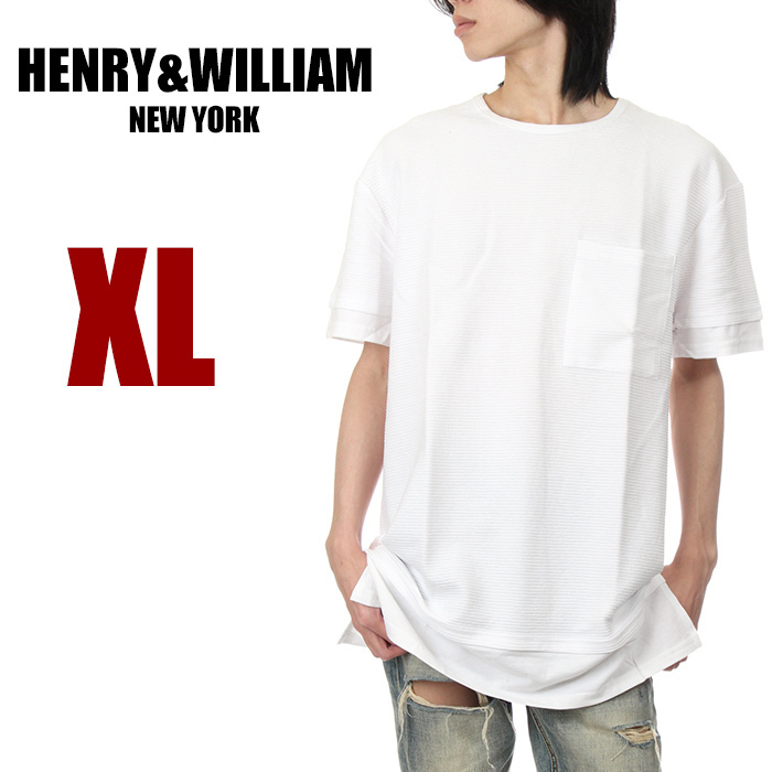 - 【新品】【USAモデル】HENRY&WILLIAM ロング丈 半袖 ポケット Tシャツ XL 白 メンズ ポケT テレコ編み 無地 ブランド 大きいサイズ