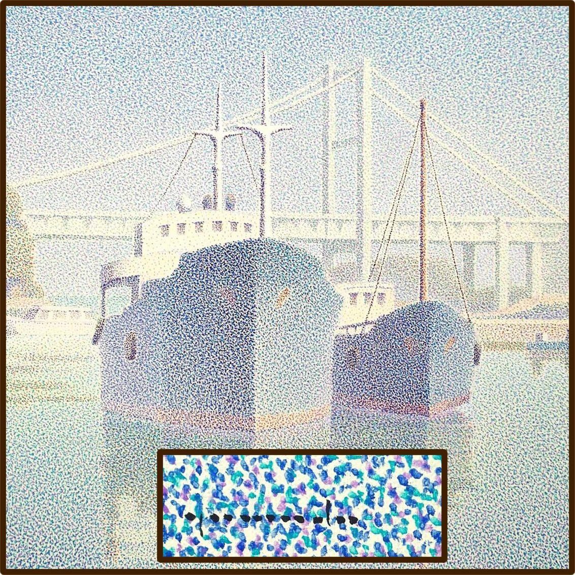 - 山田嘉彦 「停泊」/キャンバスに油彩25号/大判作品/幻想的/現代洋画壇で点描画の第一人者/師:牛島憲之/立軌会同人/真作保証/ENCHANTE