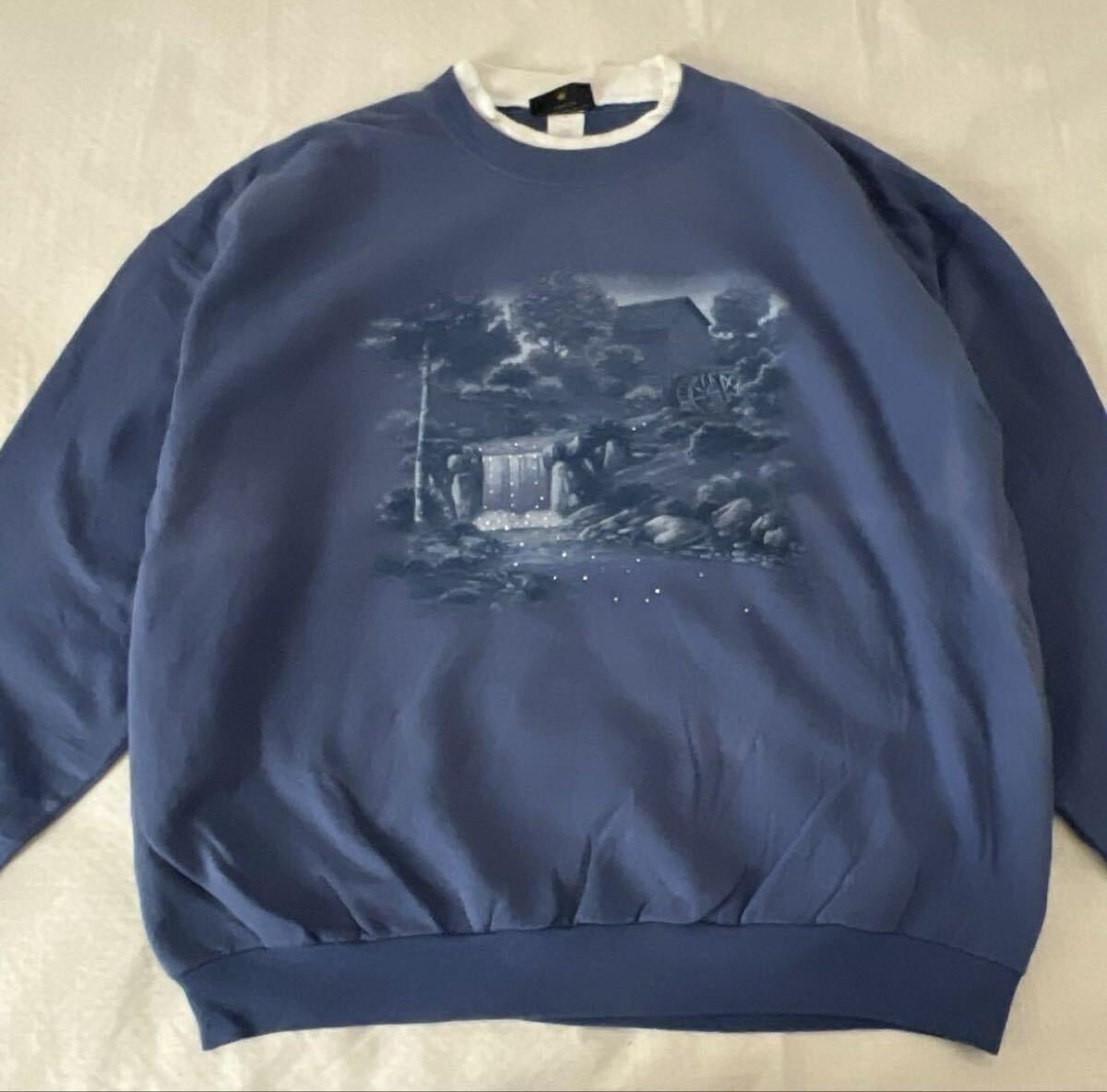 - 90's vintage Sunburst ホリデー 雪 景色 スウェット ビンテージ トレーナー 二重襟