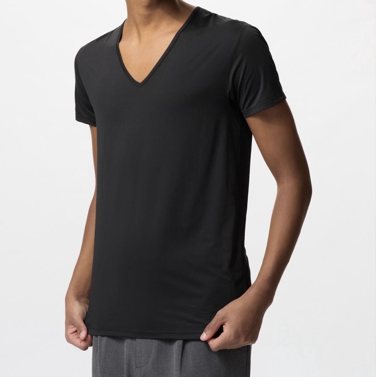 - 【3枚セット】UNIQLO/エアリズム/VネックTシャツ/ブラック