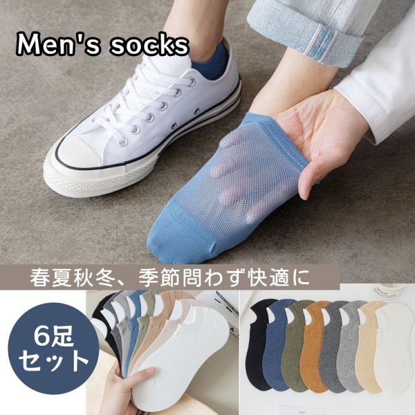 - 靴下 メンズ ノーショーソックス 6足セット 防臭 抗菌 通気性 無地 24-27cm DY2803