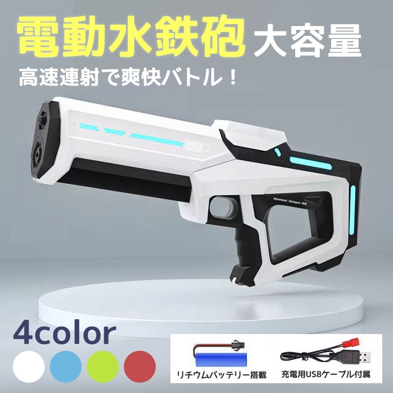 - 電動水鉄砲 ウォーターピストル 大容量タンク 自動吸水式 外部ボトル接続可能 高速連射 充電式 IP7防水 8-10m ビーチ 子供用 大人用 S00097