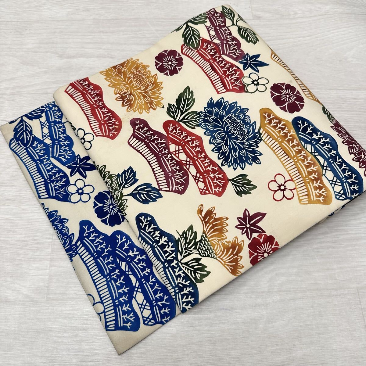 - 名古屋帯 塩瀬 型染め 九寸 正絹 着物 W-4637