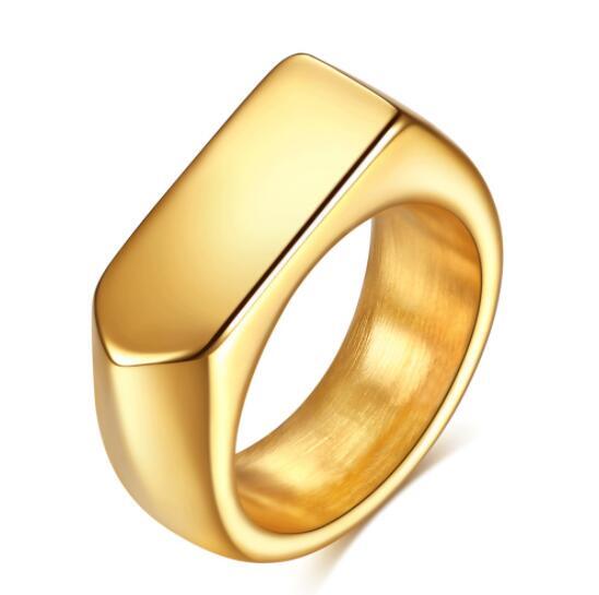 - 高品質 メンズリング 指輪 ゴールド 18金メッキ シンプル ステンレス リング 印台 指輪物語 指輪の選んだ婚約者 金