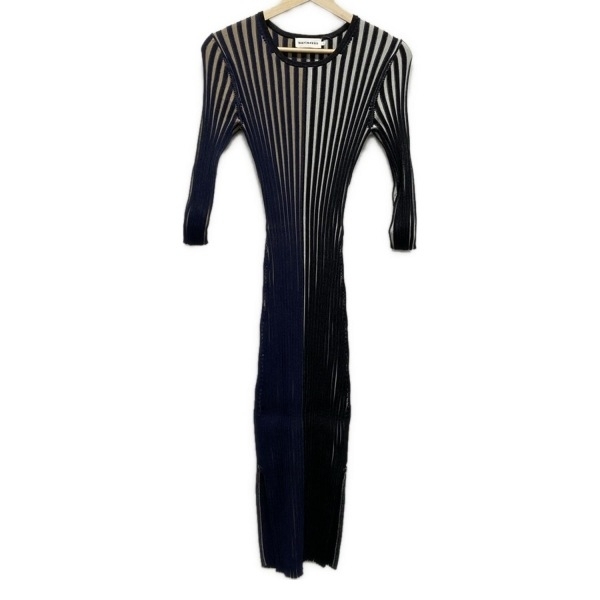 > マリメッコ marimekko サイズS - 白×黒×マルチ レディース クルーネック/七分袖/マキシ丈/ストライプ ワンピース