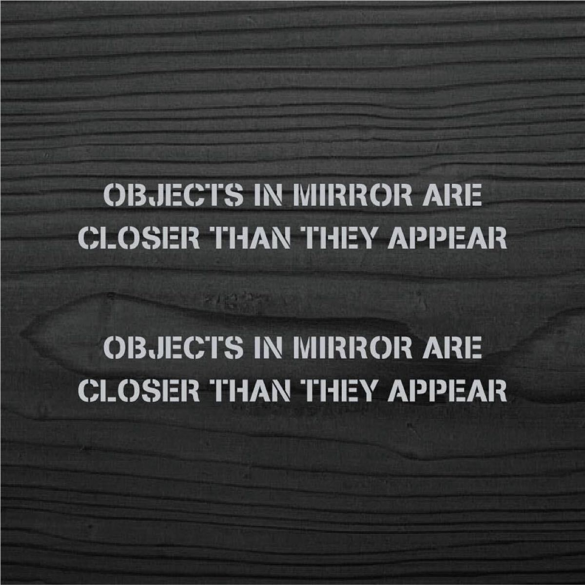 - ドアミラー ステンシル ステッカー 左右 US仕様 OBJECTS IN MIRROR ARE CLOSER THAN THEY APPEAR 銀色 カッティングステッカー 転写シール