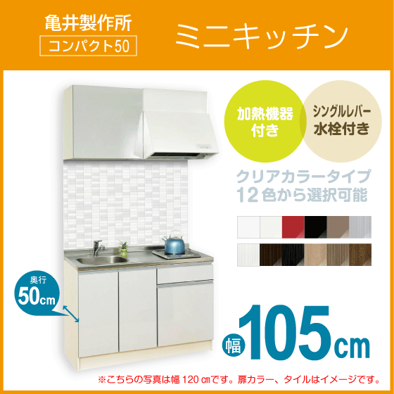 > ミニキッチン コンパクト50(扉カラー:クリア) 間口105cm フルタイプ SS105FJTK2R,SS105FJTK2L 亀井製作所 1,050mm