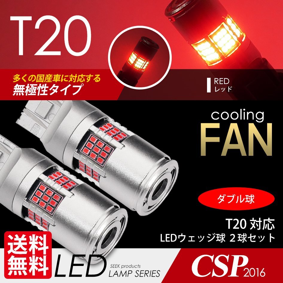 > T20 LED SEEK 54連 冷却ファン付 レッド/赤 ブレーキランプ/テールランプ ダブル球 無極性 ウェッジ球 国内 検査後出荷ネコポス 送料無料